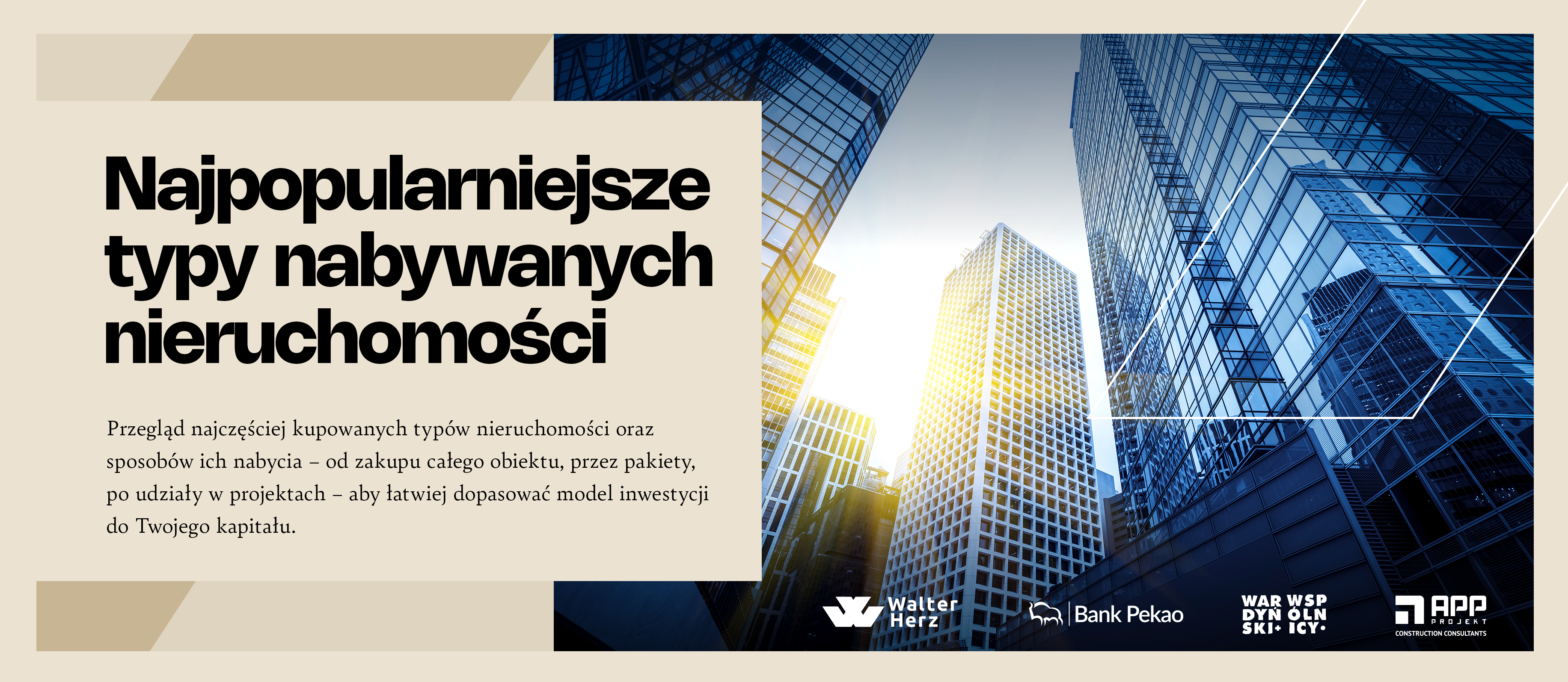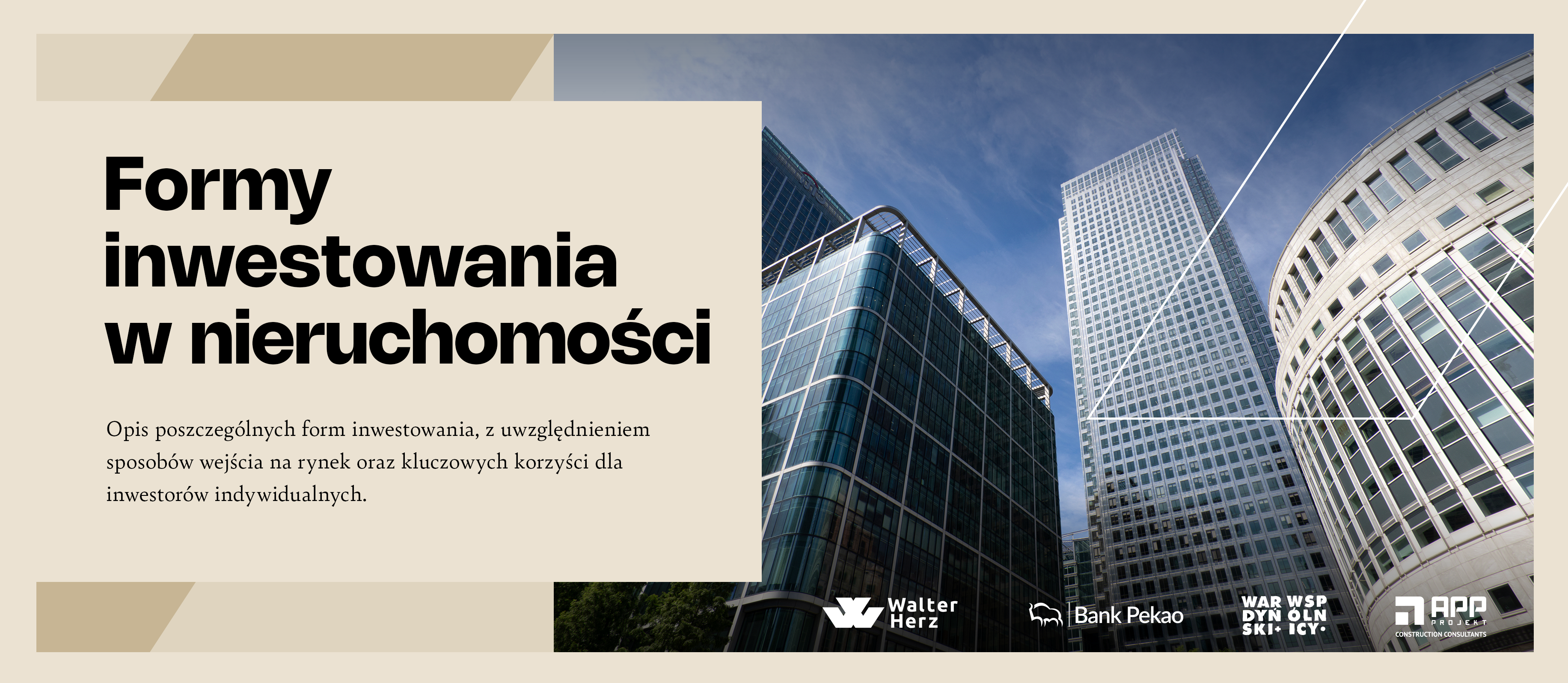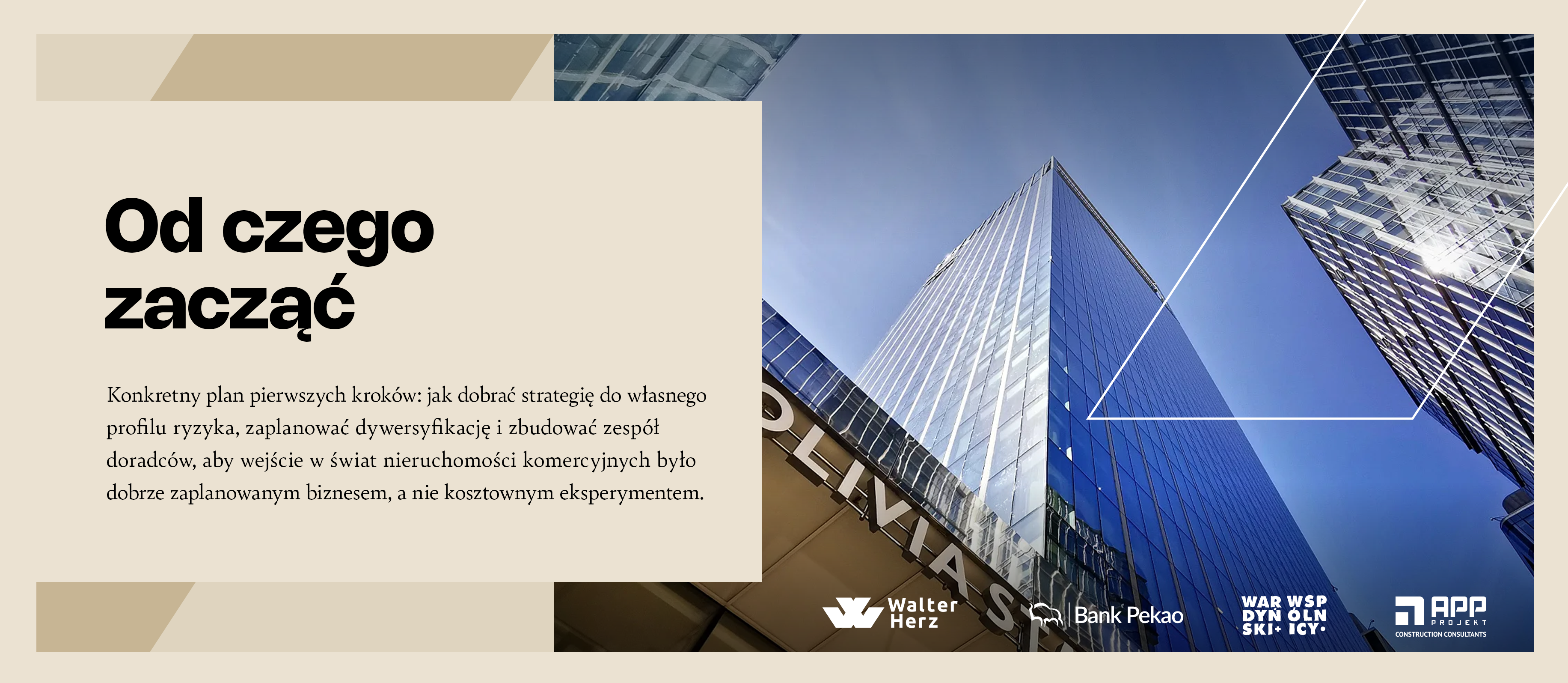 Z myślą o osobach, które chcą wejść na rynek CRE (Commercial Real Estate) w sposób świadomy, przygotowaliśmy raport „Jak inwestować kapitał w nieruchomości komercyjne?”. To praktyczny przewodnik po inwestowaniu w biurowce, parki handlowe, magazyny i inne aktywa komercyjne – napisany językiem przedsiębiorcy, nie podręcznika akademickiego. W jednym materiale łączymy wiedzę i doświadczenie Walter Herz oraz partnerów: Banku Pekao S.A., kancelarii Wardyński i Wspólnicy oraz APP-Projekt.